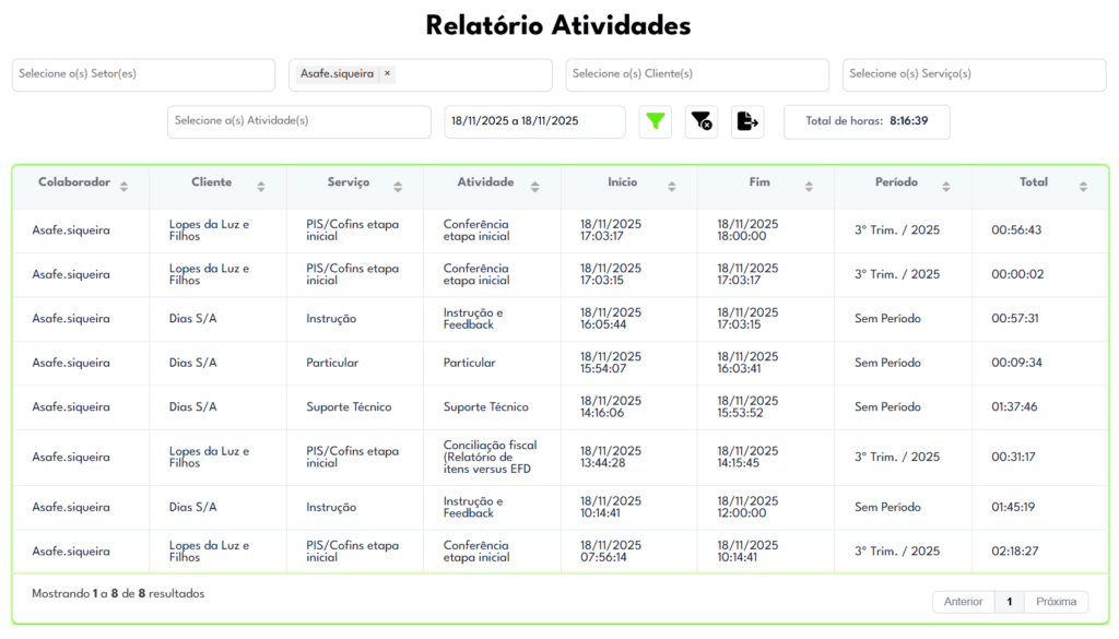 Tenha acesso a relatórios analíticos específicos por colaborador e por cliente.